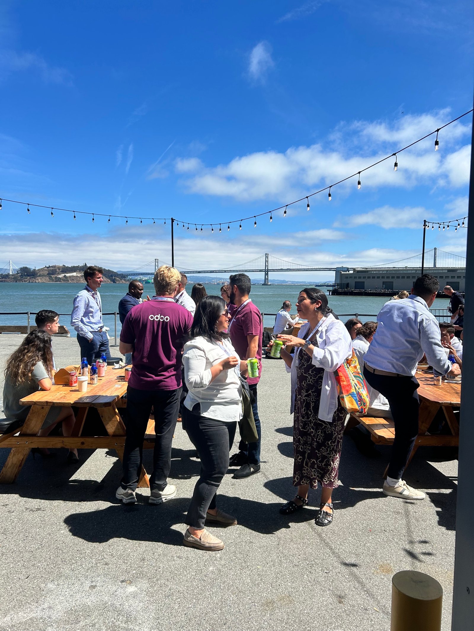 The Odoo Team held an incredible event right on the waterfront. Pier 27 hosted a sizable exhibitor floor and large spaces for attendees to join informative talks and demos. And with views of the Bay and Alcatraz Island, it was so nice to be able step outside and say hello to some sea lions! The OnSIP UV protectant shades we offered as booth swag came in super handy, as it was (surprisingly) not foggy.
