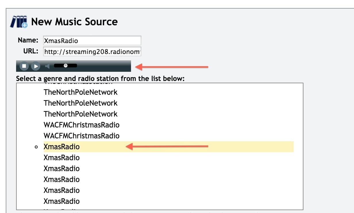 Step 9: Choose the Music Stream from the list below. You will find Holiday Streams under “Christmas”, “Christmas Holidays” and “Holiday”
