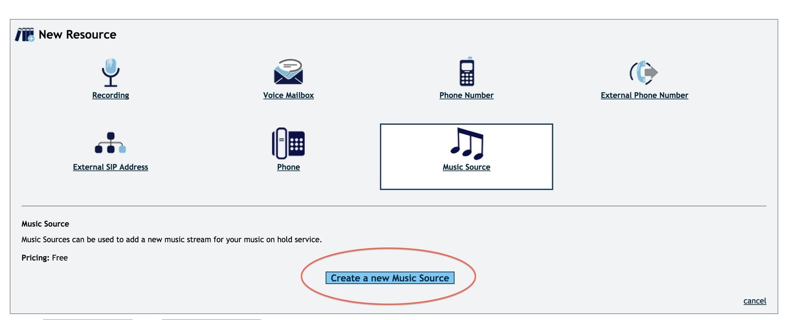 Step 7: Select the Music Source Icon, and select Create a New Music Source