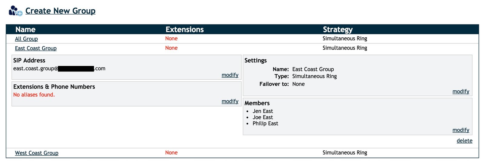 While logged into the Admin portal, select the Groups tab, then select Create New Group. Chuck helped the customer create 3 groups with simultaneous ring strategies: